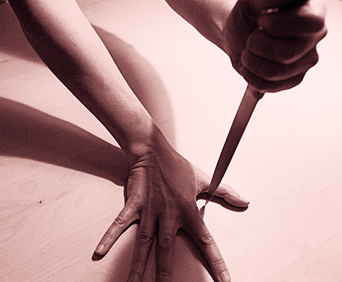 I dag var det tema farligt. Jag hade noll inspiration. Hur fotograferar man farligt? Jag tänkte och tänkte och kom inte på nåt. Tänkte eld, tändstickor, varningstrianglar på sprejburkar, knivar… Kom sedan fram till att jag skulle försöka arrangera en bild på knivleken. Där man så fort som möjligt ska hugga med en kniv mellan fingrarna. Jag kan säga att jag höll på att missa… :O Nå. Så här blev det. Inte så bra, men det är en bild i alla fall.