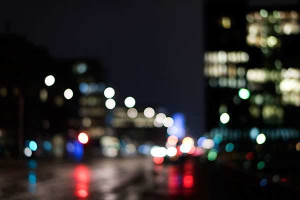 I dag var temaordet natt. Roligt. Finns mycket spännande att göra. Jag har länge tänkt att jag vill ta en stadsbild där alla ljuskällor bara flyter ut och blir runda prickar, inget är skarpt utan allt är bara så där reflexer. Som det blir när man har glasögon och det regnar och det är bara droppar på glasögonen och allt blir prickigt, suddigt och man ser reflexer från allt ljus. Jag använde 58-mm objektivet igen, satte skärpan på manuell och vred om så allt blev lagom oskarpt. Nice!