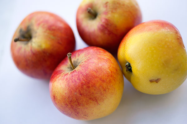20150302_fruktwI dag var temat frukt. Inte så komplicerat. Först tänker man ju gärna att man vill visa mängder av frukt, lite Hötorgsmodellen. Men det är ju lite gormigt att få till. Man kanske alltså ska välja en sorts frukt och gå nära? Hitta det där som visar vilken frukt det är, detaljer. Hm. Vi hade äpplen hemma. Det fick bli äpplen.