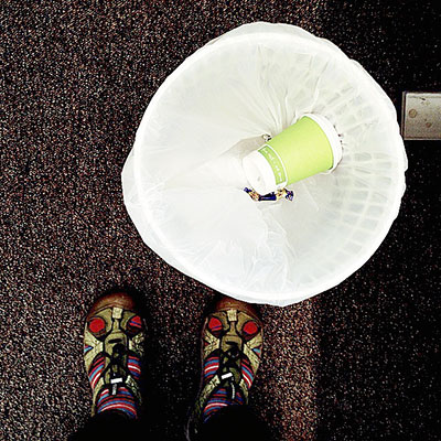 20150409_dardustarwI dag var fototemat där du står. Det kan ju betyda vad som helst. Jag tänkte på min stora förebild Lars Tunbjörk och fotograferade en ful bild av mina fötter och papperskorgen på jobbet. Med spåren av en latte och en liten fazerchokladbit som jag fikat upp efter lunchen. Det var ju plåtat med mobilen och fick inte riktigt den där Tunbjörkkänslan jag ville åt, det hade jag behövt en bättre kamera för. Och egentligen lite mer tid för att finna motivet.
