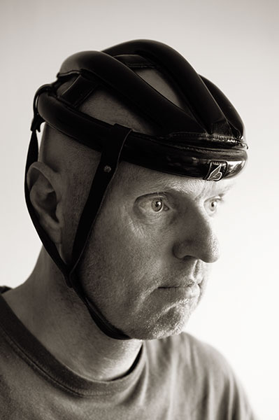 Maken har ju tävlingscyklat i ungdomen och han har faktiskt använt den här ”hjälmen”. I dag ser ju cykelhjälmar ut på ett helt annat sätt, men det här var alltså standard för inte allt för länge sedan. Inte mycket till skydd… Otroligt, var ordet.